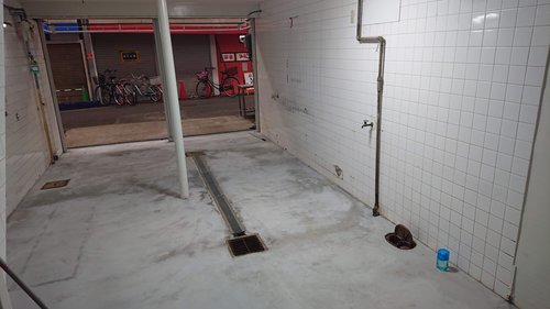 大型冷蔵庫・キッチン設備・室外機等放置による退去後の清算工事にオーナー様による雨漏り補修になっております。工事内容は雨漏補修・残置物撤去・2階部分壁紙と床材交換・1階部分インフラ補修・1階部分左官工事・1階部分洗い(清掃)作業)・シャッター交換・テント看板補修・その他雑工事多数 商店街アーケード内の為、早朝工事と屋根工事の為、隣接マンション屋上を拝借した費用がアップになっております。